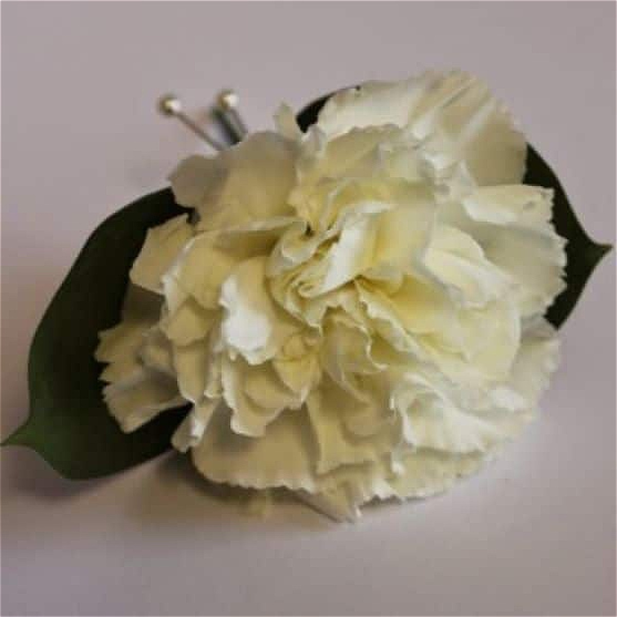 A simple and beautiful button hole to be worn at the time of the memorial service. Choice of rose or carnation with complimentary coloured pleated foliage and button hole pin.